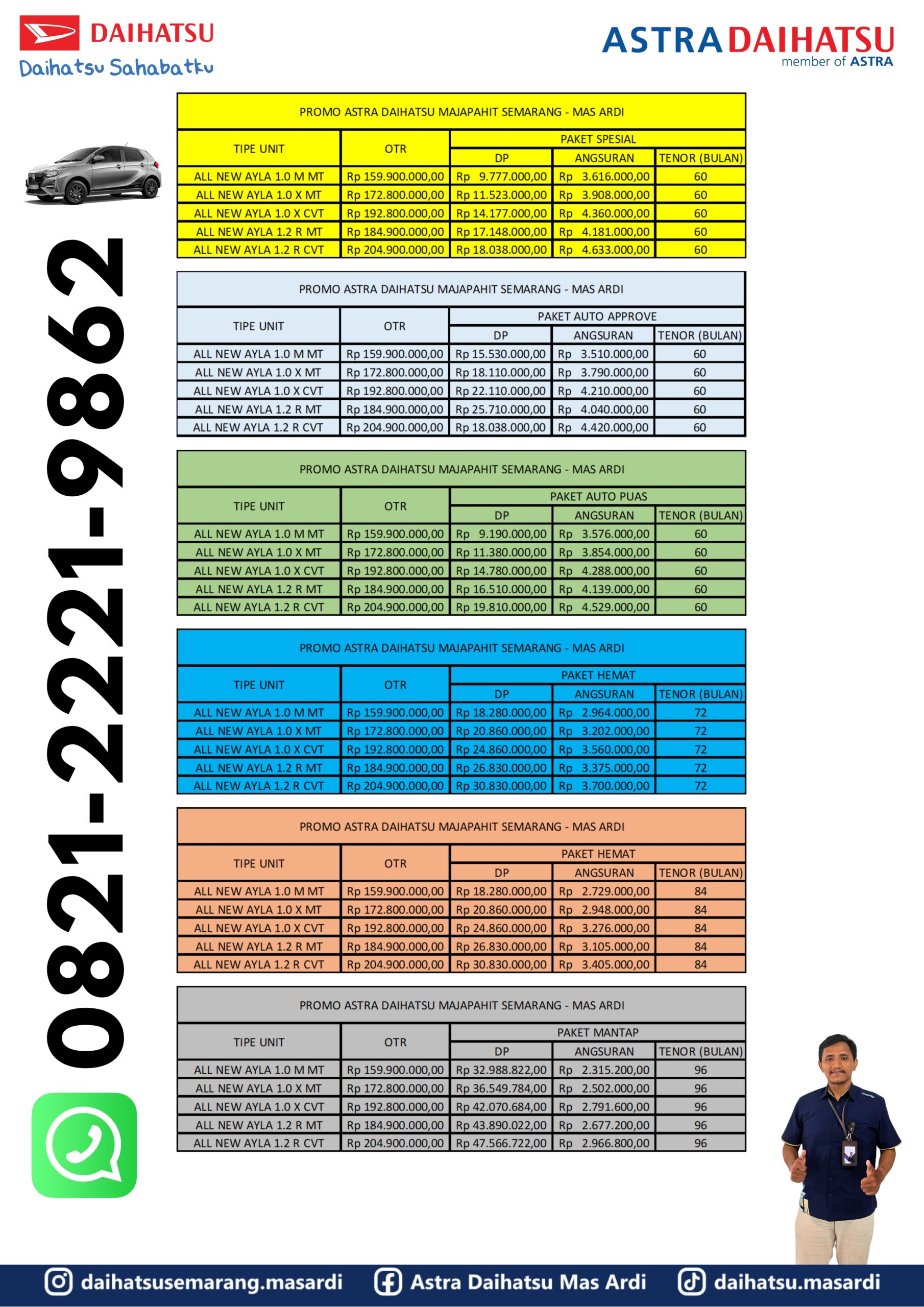 Untuk informasi lebih lanjut mengenai simulasi kredit, test drive, atau konsultasi, calon pembeli dapat menghubungi kontak resmi Mas Ardi di