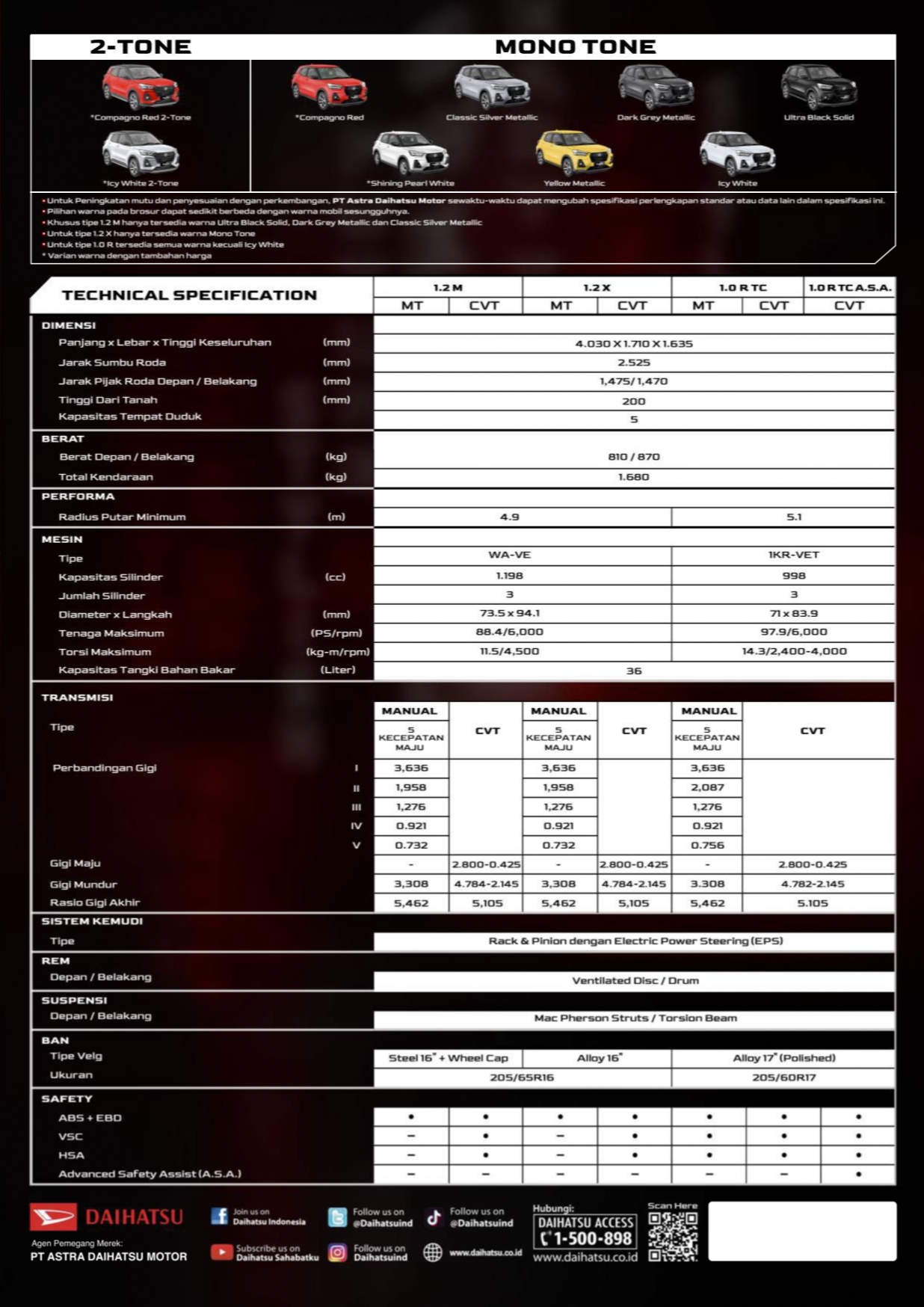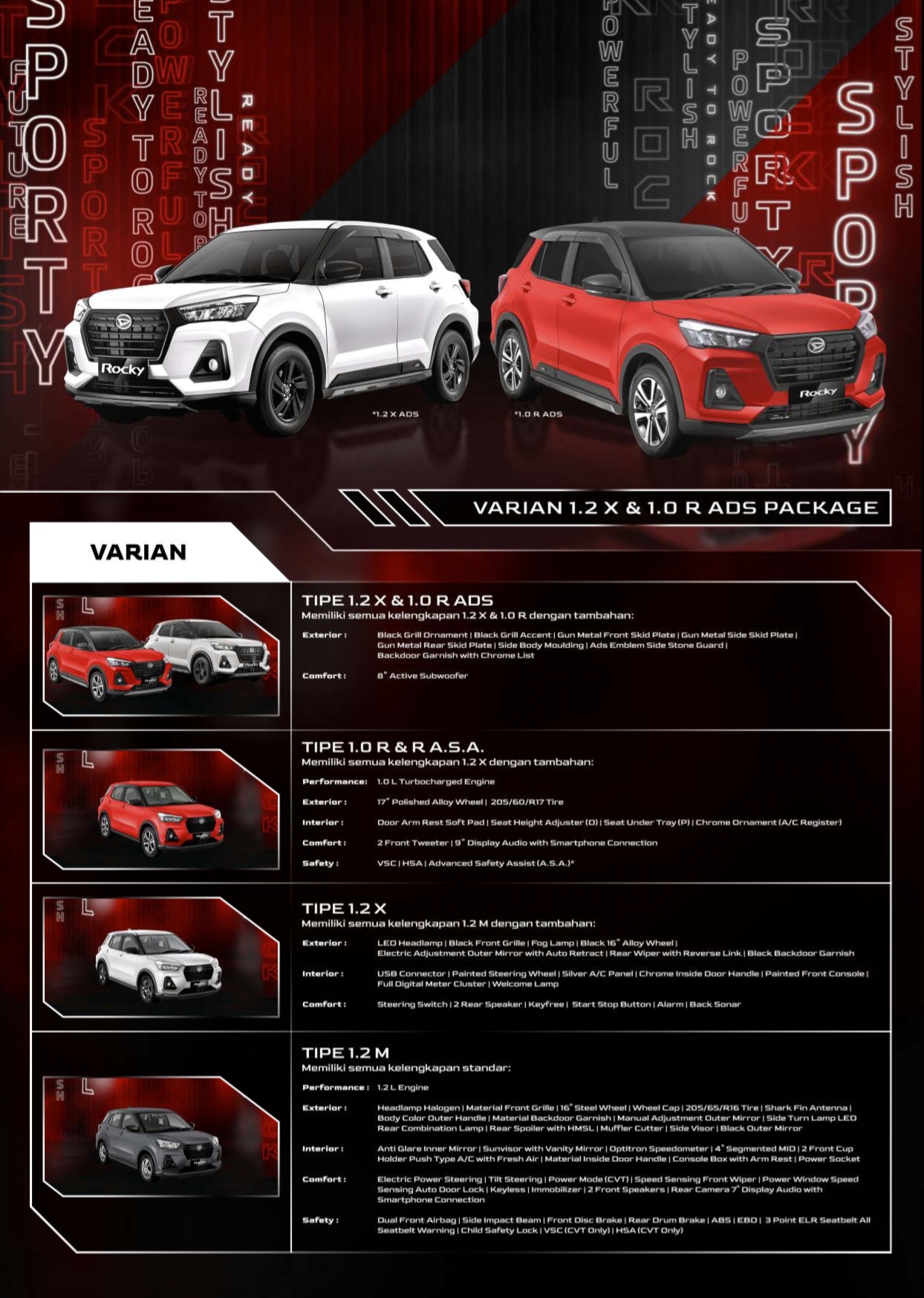 Di negara kelahirannya, Jepang, Daihatsu Rocky hadir dalam 4 tipe; Premium, G, X, dan L. Keempatnya ditawarkan masing-masing dalam penggerak 2WD dan 4WD. Secara total, berarti ada delapan harga yang dimiliki oleh Daihatsu Rocky ini.