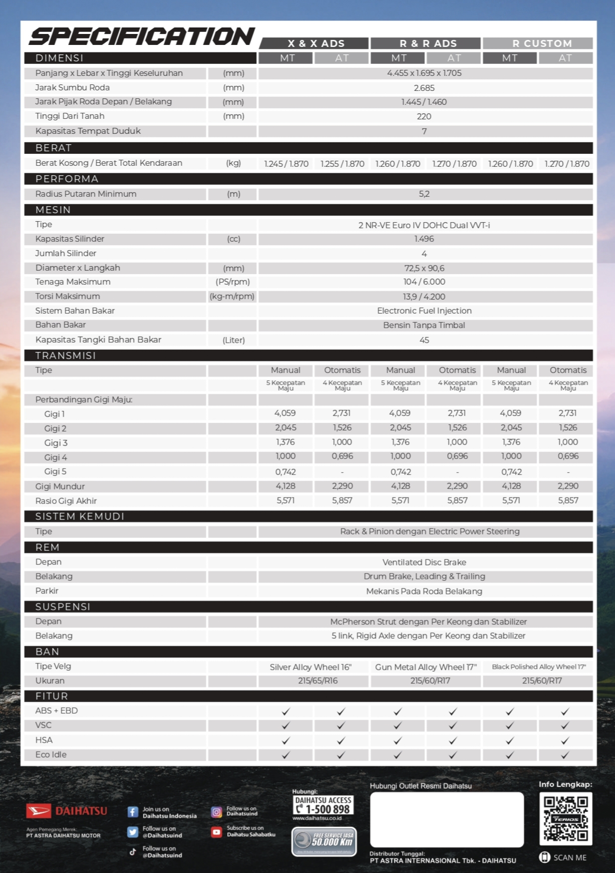 Beralih ke dimensi. Terios Baru memiliki ukuran yang lebih panjang dan tinggi dibanding model sebelumnya. All New Terios memiliki panjang 4.435mm x lebar 1.695mm x tinggi 1.705mm. Sementara itu, jarak sumbu roda mencapai 2.685mm dengan jarak ketinggian dari tanah 220mm.